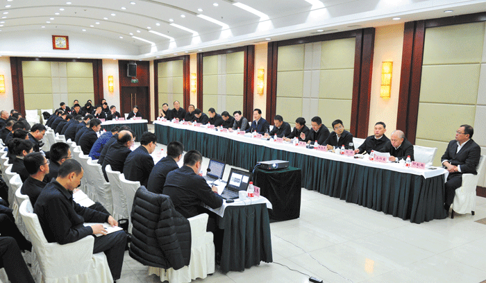 圖為本鋼集團(tuán)黨委常委(擴(kuò)大)會議會場。